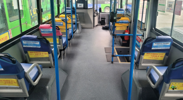 사회적협동조합 우리사이 역시 마을버스 광고를 진행 중입니다. 인사랑케어와 다른 점은 하차문 광고가 아닌 좌석 시트광고로 실시했습니다.